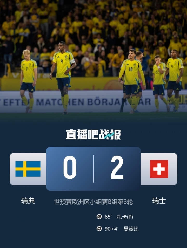 世預(yù)賽歐洲區(qū)小組賽B組第3輪,瑞典0-2不敵瑞士,遭遇三場不勝。